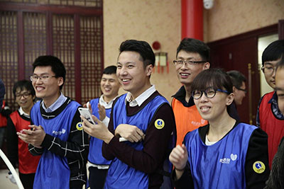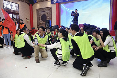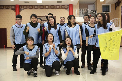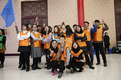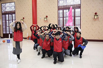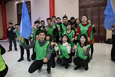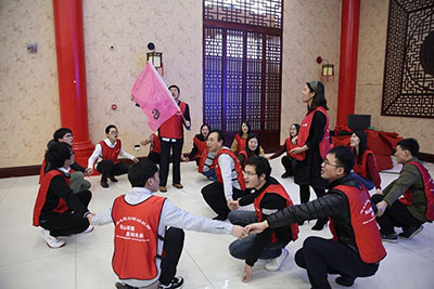 在一系列有趣的熱身活動之后,開啟了終極大比拼——過山車制作比賽。全員分成八個戰(zhàn)隊,一飛沖天,二龍戲珠,三陽開泰,四季發(fā)財,五福臨門,三宮六院,旗開得勝,八面玲瓏。八個戰(zhàn)隊各顯身手,雖是臨時組成的團隊,卻很快融入角色,從物資采購、造型設計、零件組裝、工業(yè)制作、海報設計、后期宣傳、后勤助理各個領域,分工配合,各司其職,有條不紊,均在一個小時內完成了出色的過山車成品。